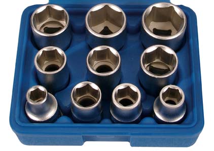- aus Chrom-Vanadium-Stahl - Größen: 10-12-13-14-15-17-19-21-22-24 mm - Einsätze mit Bohrung für Haltekugel In Metallkas