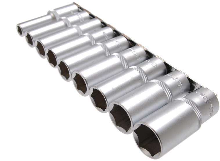 - alle Teile aus Chrom-Vanadium-Stahl- matt verchromt mit Kordierung- 6-kant Pro-Torque-Profil- Größen: 10-13-15-16-17-18-19-22-24 mm Artikelnummer : 2223