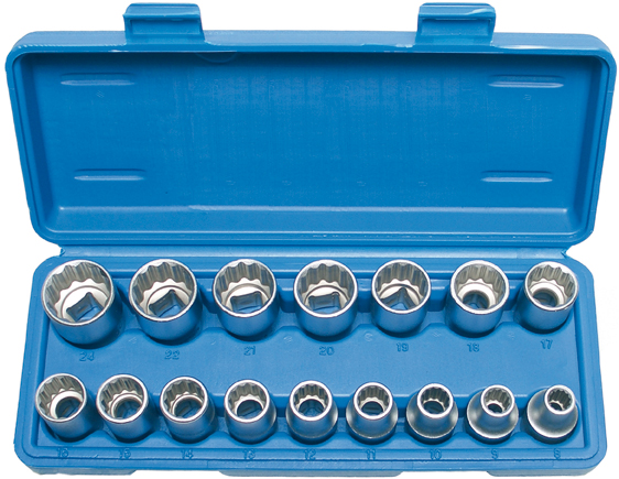 Steckschlüssel-Einsätze 1/2", 10-24 mm, 12-kant, 15-tlg.