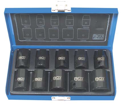 - aus Chrom-Vanadium-Stahl- Größen: 10-12-13-14-15-17-19-21-22-24 mm- Einsätze mit Bohrung für HaltekugelIn Metallkassette Artikelnummer : 5205