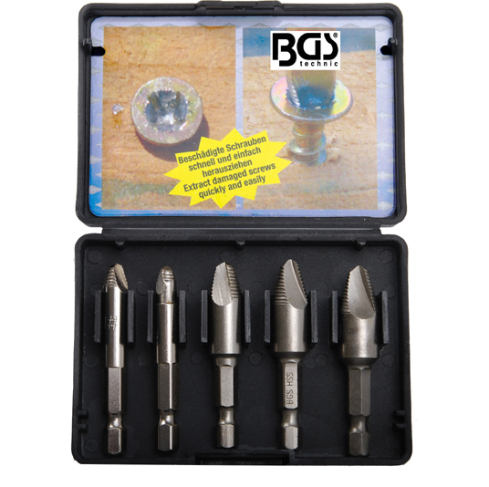 - Carbon Stahl - für alle Arten von Kreuzschlitz-, T-Profil- und Innensechskantschrauben - in 5 unterschiedlichen Größen - für Bohrmaschine geeignet (max. 250 U/min)