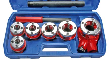 - Schneidkluppenratsche mit Verlängerung- je eine Kluppe 6,3 (1/4) - 10 (3/8) - 12,5 (1/2) - 20 (3/4), 25 (1) - 31 (1 1/4) Artikelnummer : 1891