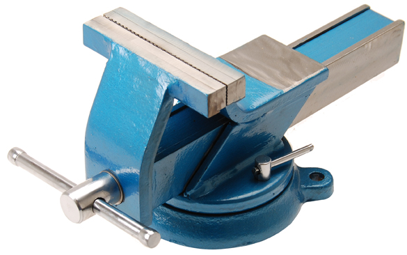 - 360° Drehteller mit 3 Befestigungbohrungen Ø 10 mm auf 183 mm Lochkreis über Knebel arretierbar - geschmiedete Ausführung - geschraubte Backen - max. Spannweite: 150 mm - Länge: 385 mm