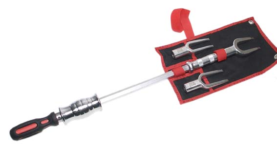 - zum Trennen von Kugelgelenken - Länge 720 mm - mit 3 auswechselbaren Trenngabeln - Innenbreite 16 mm, 24 mm, 28 mm