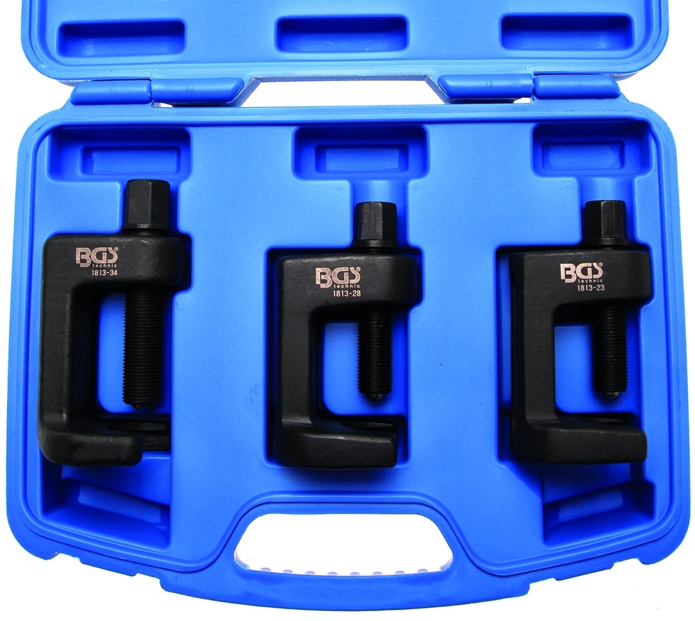 - zum Ausdrücken des Kugelgelenkzapfens / Traggelenkzapfens aus Achsschenkel, Lenkhebel, Stabilisator - speziell zum Einsatz bei engen Platzverhältnissen - nur zur Verwendung bei geschlossenen Gelenkzapfen oder Gelenkzapfen mit Zentrierbohrung - Größen: 23x55, 28x55, 34x63 mm